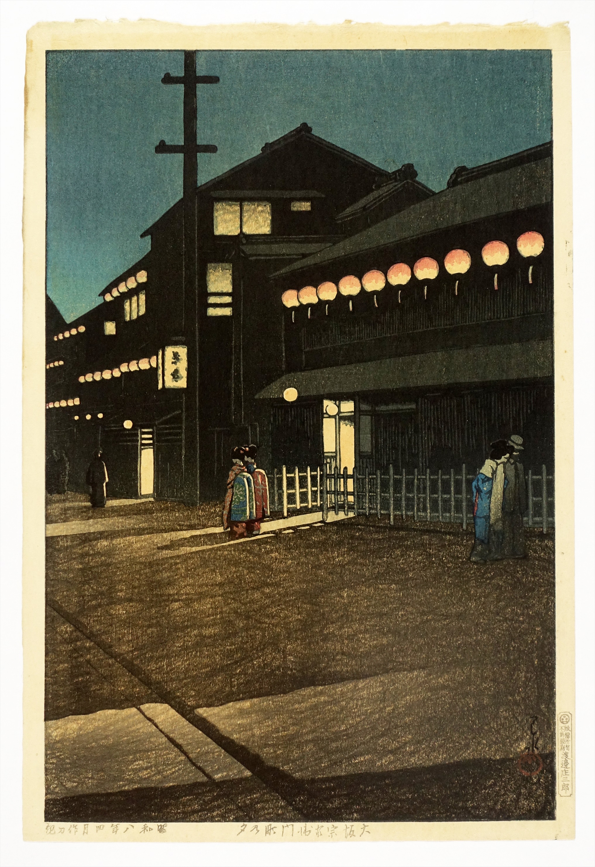 川瀬巴水木版画 大坂宗右衛門町の夕