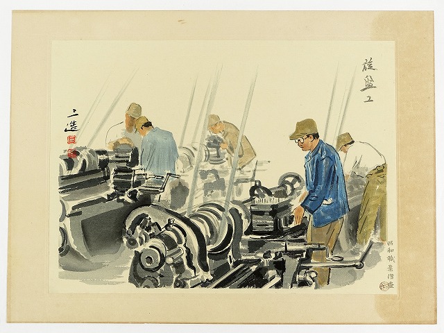 和田三造木版画 昭和職業絵尽 第一輯 旋盤工