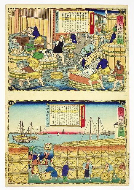 大日本物産図会 摂津国 伊丹酒造之図・新酒荷出之図 上下
