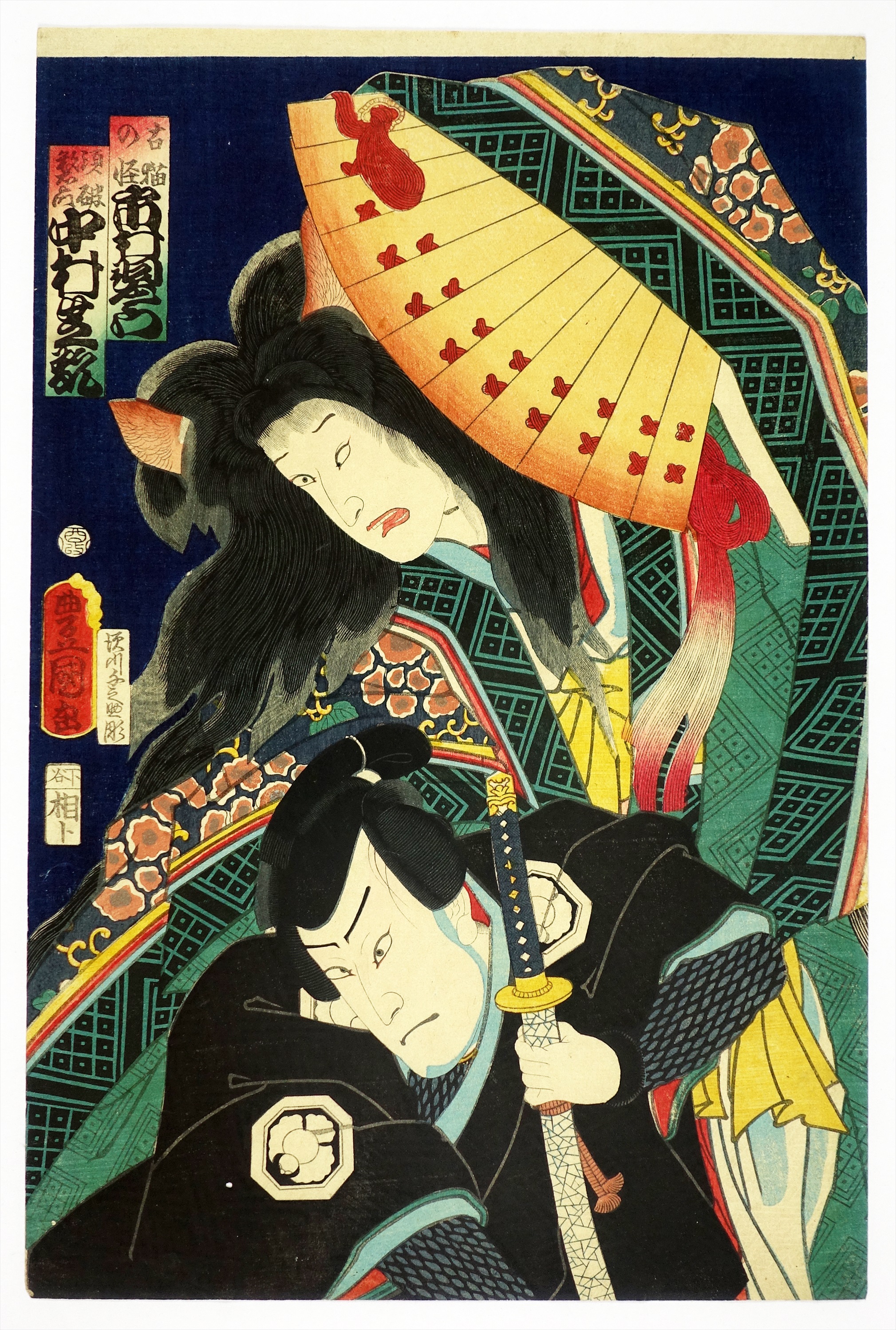 古猫の怪 市村羽左衛門 須破数右衛門 中村芝翫(役者絵)