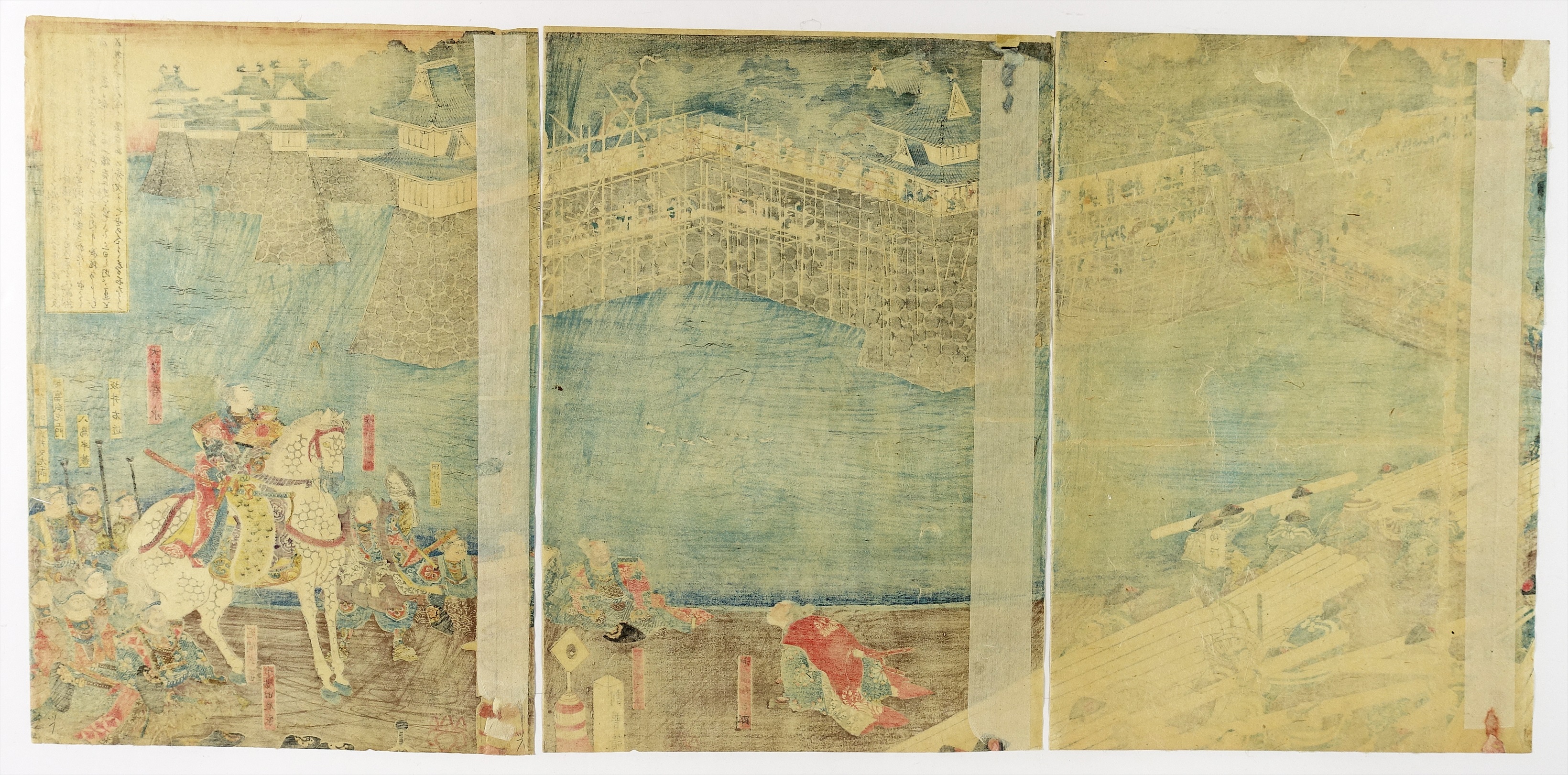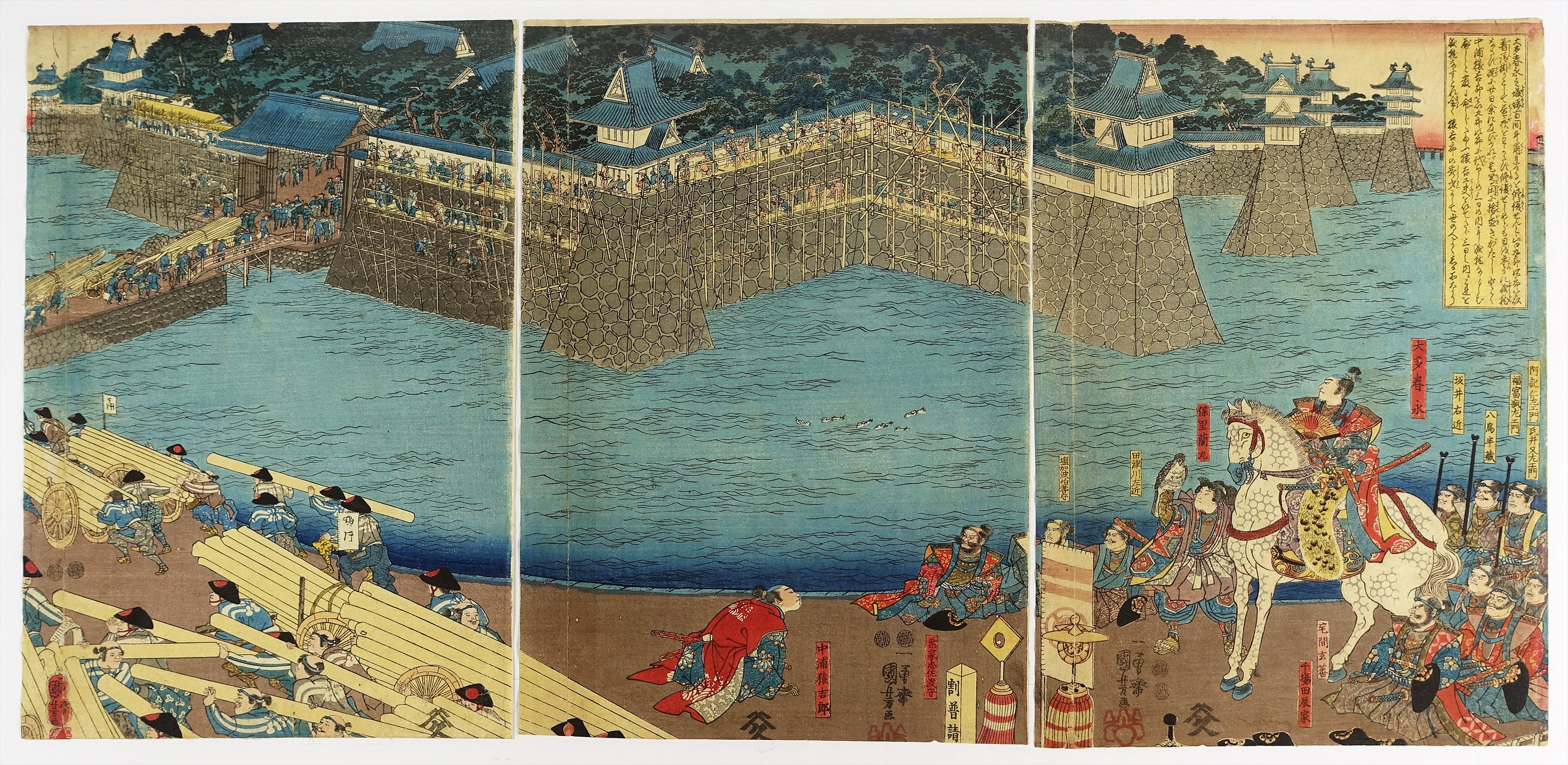 大多春永城堀修復之図 三枚続 (仮題 歴史 武者絵)
