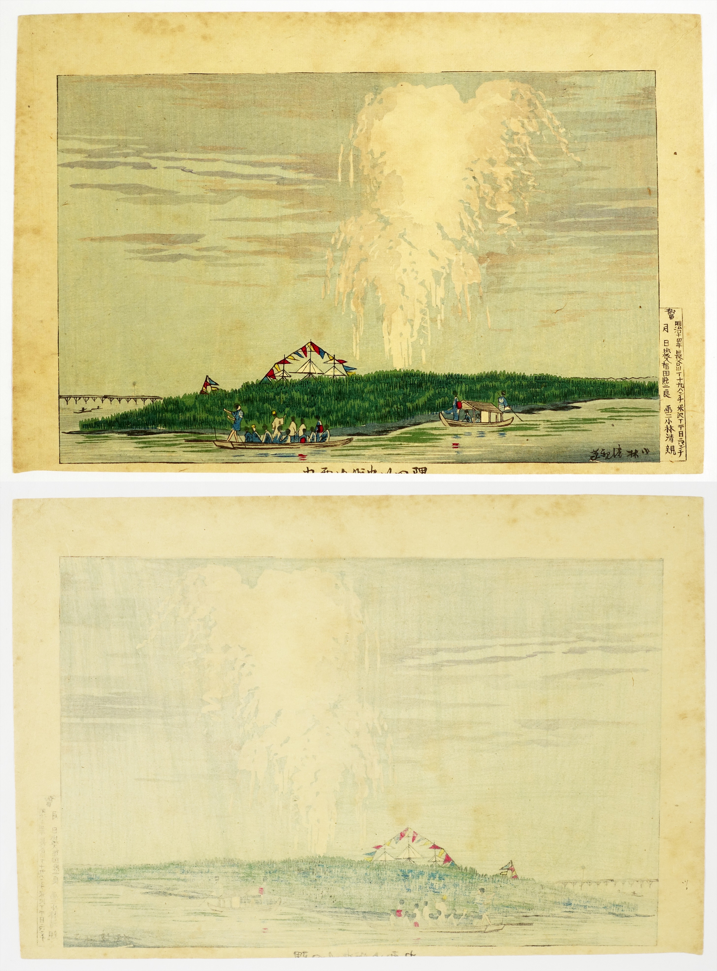 刷り良 保存良 裏打ち有り 中図縁剥がし跡 右図少シミ