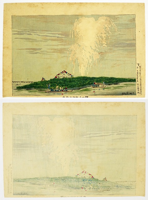 小林清親木版画 隅田川中洲水雷火