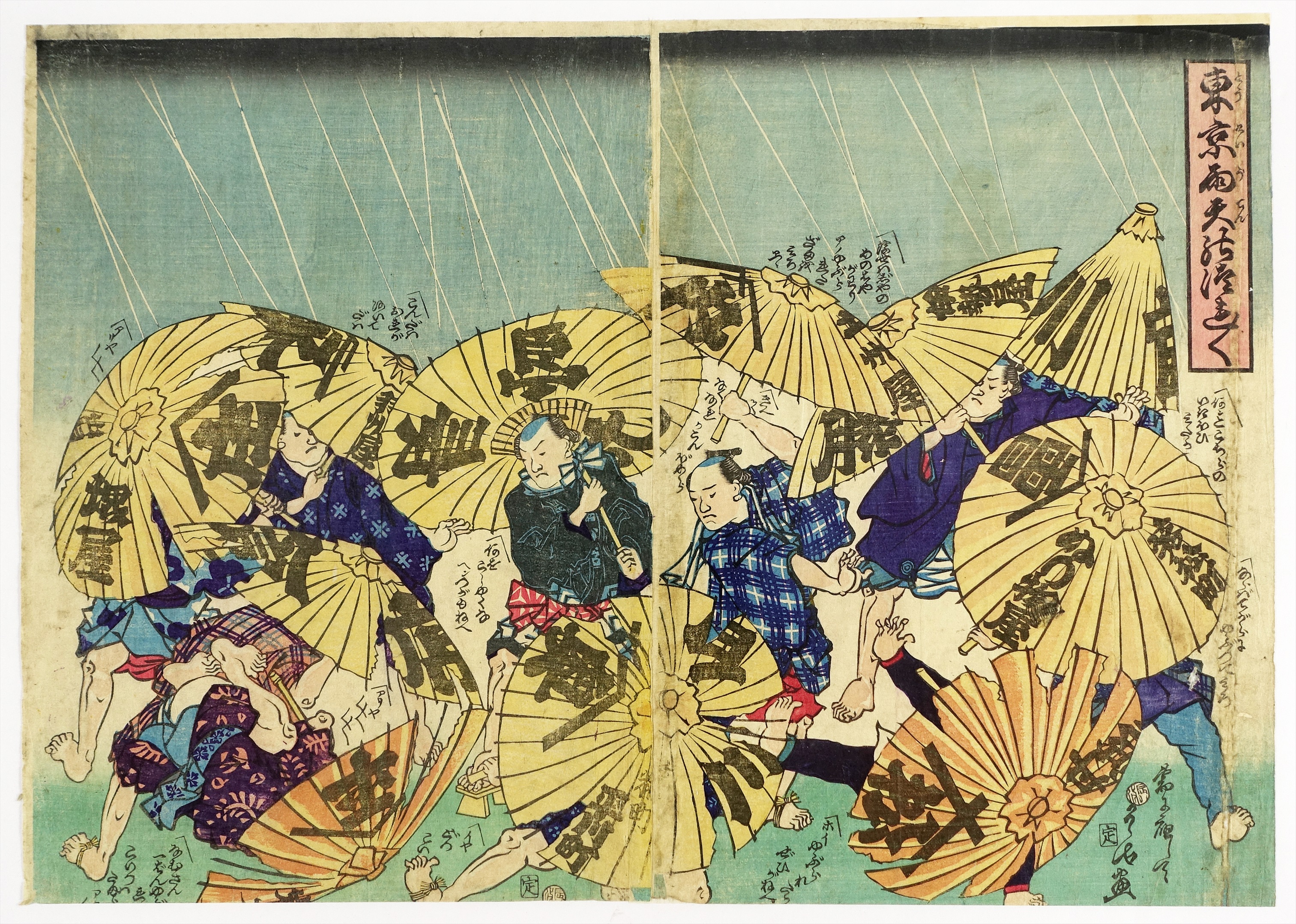 東京雨天のつれつれ 二枚続 (戯画・諷刺画)