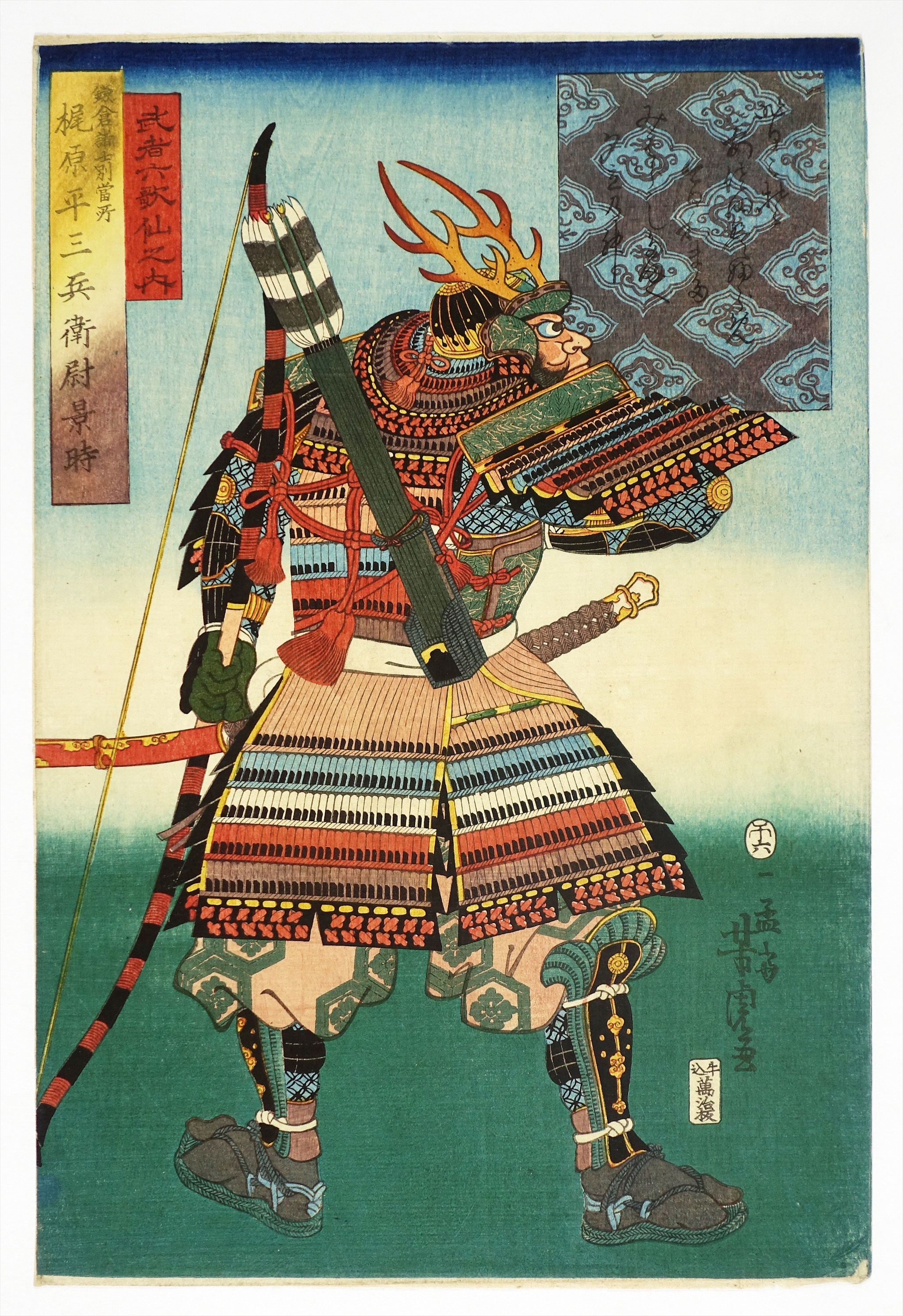 武者六歌仙之内 鎌倉諸士別当所 梶原平三兵衛尉景時 (歴史画 武者絵)