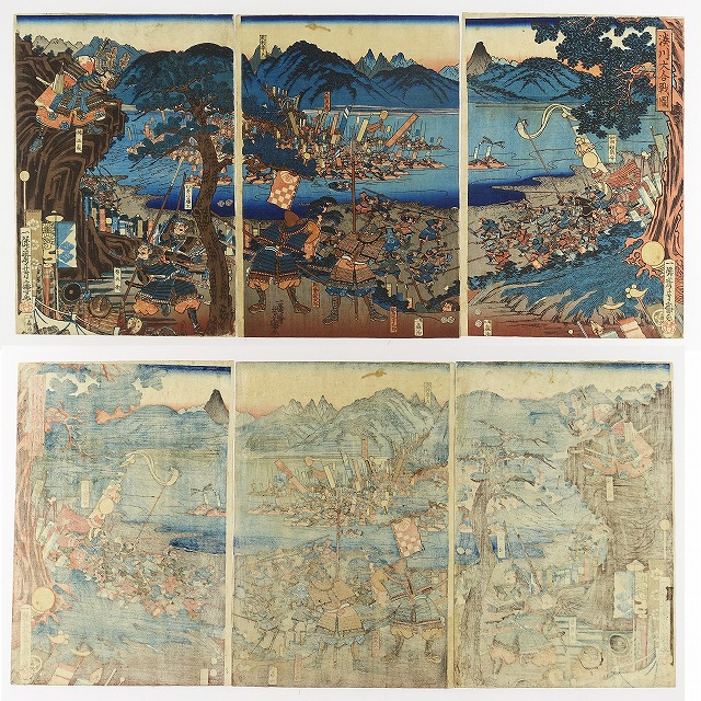 湊川大合戦図 三枚続 (歴史画 武者絵)