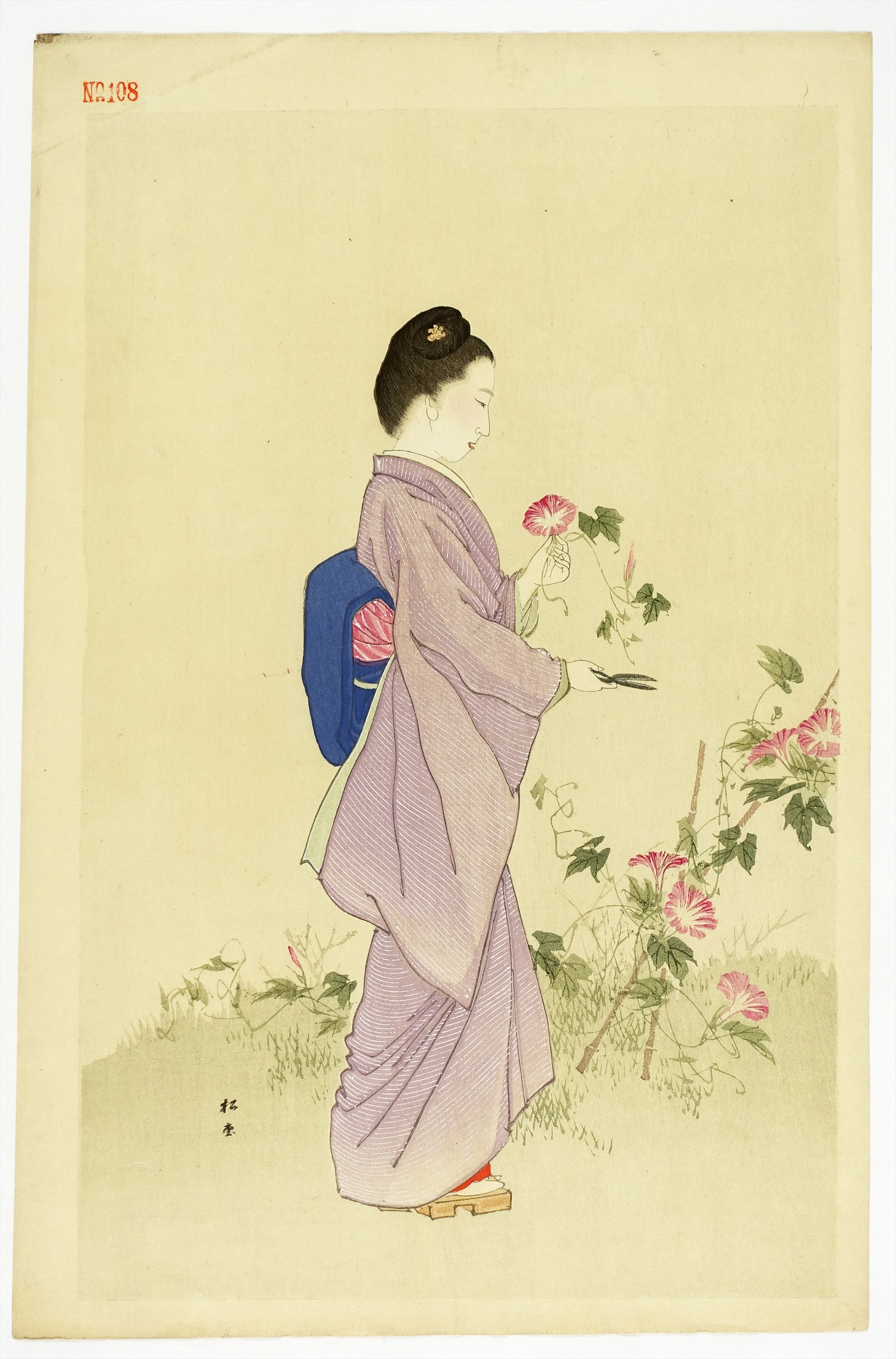 湯川松堂美人木版画 朝顔(仮題)