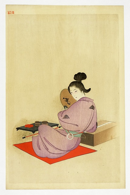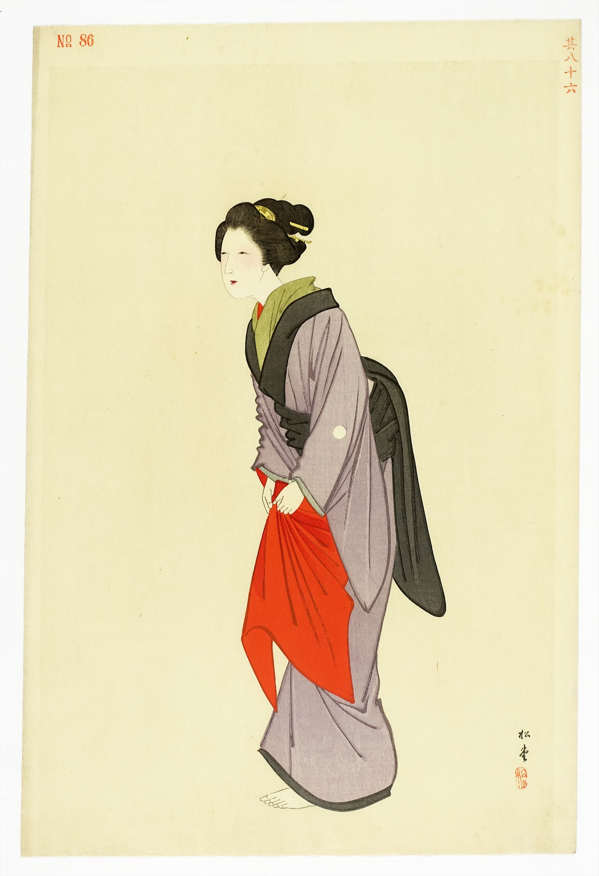 湯川松堂美人木版画 紫の着物(仮題)