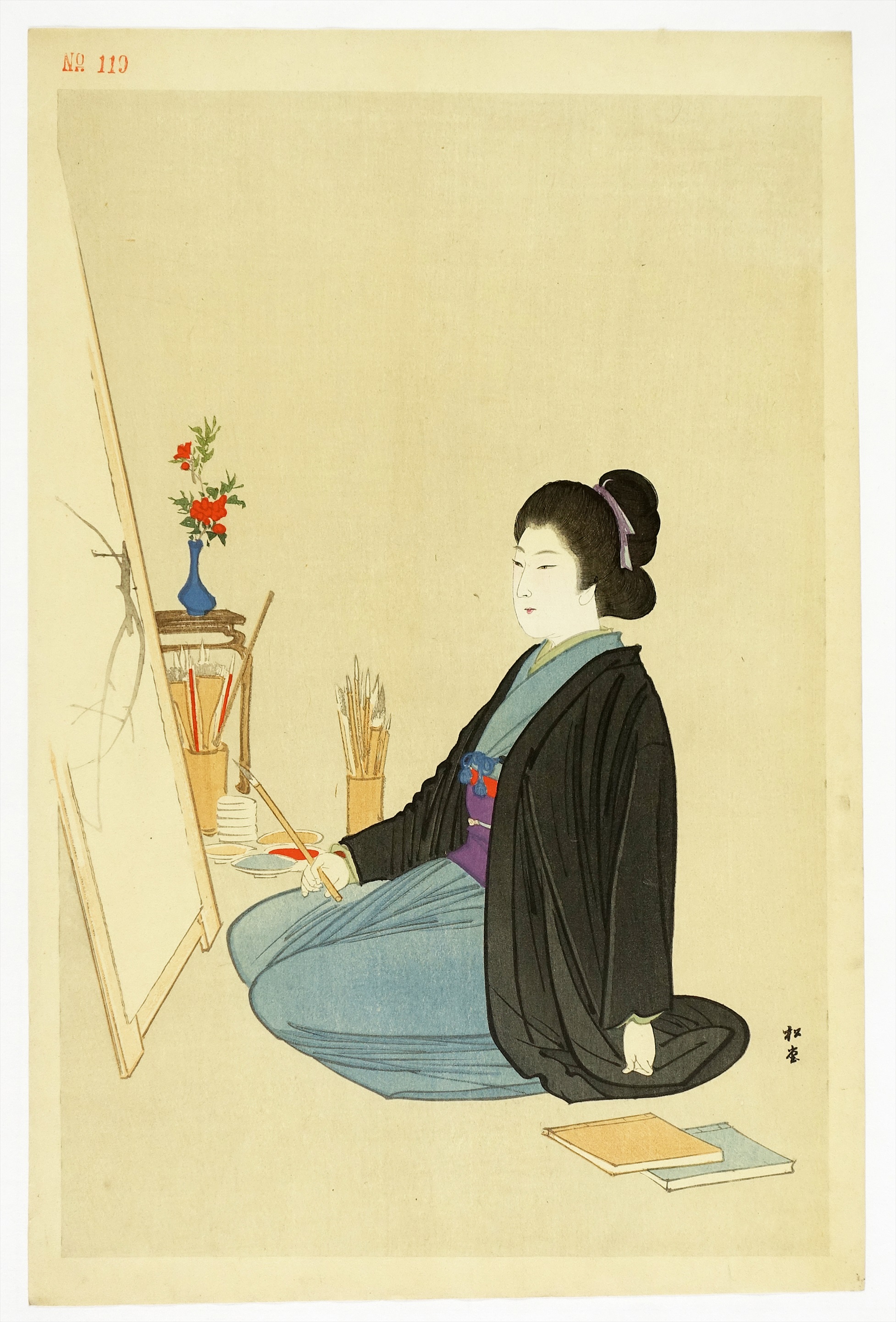 湯川松堂美人木版画 絵を描く(仮題)