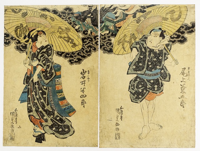玉屋新兵衛 尾上菊五郎 三国小女郎 岩井半四郎 二枚続 (役者絵)