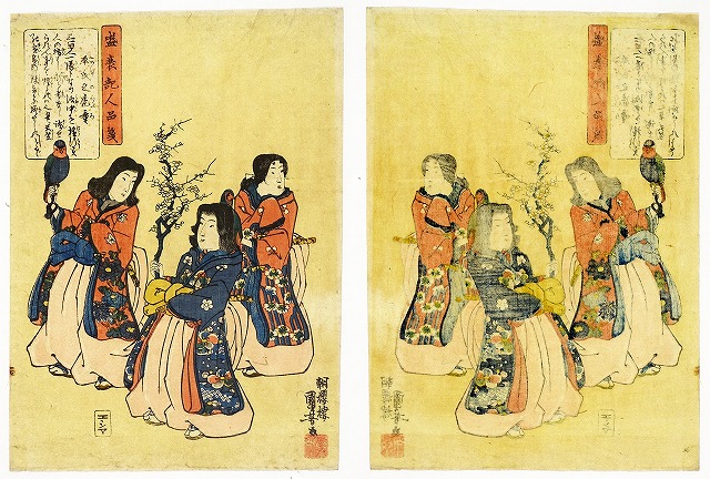 刷り良 保存良 但し左図の鳥の左横虫補修補紙有り
