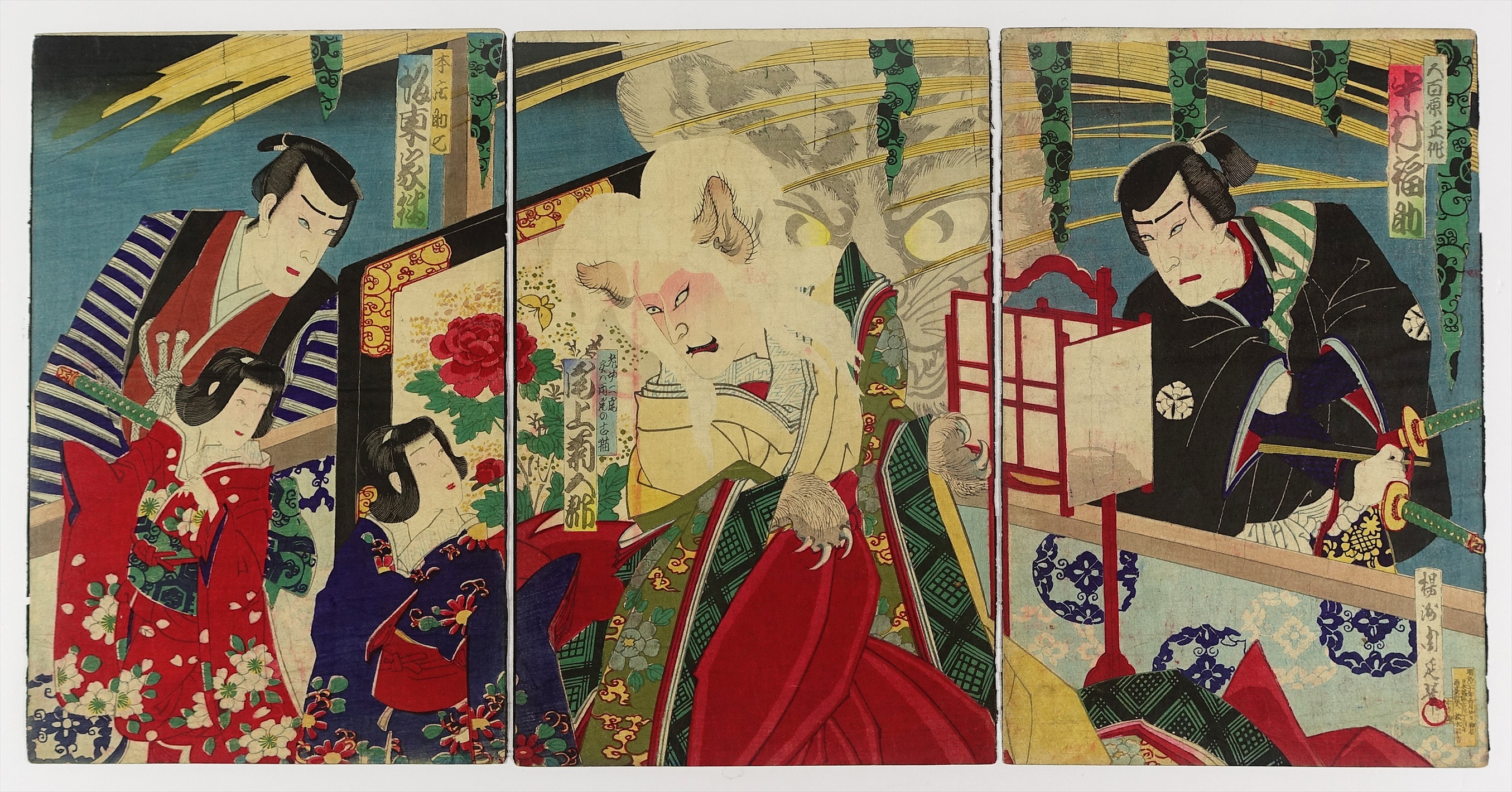 老女二尾実ハ両尾の古猫 尾上菊五郎 三枚続 (役者絵)