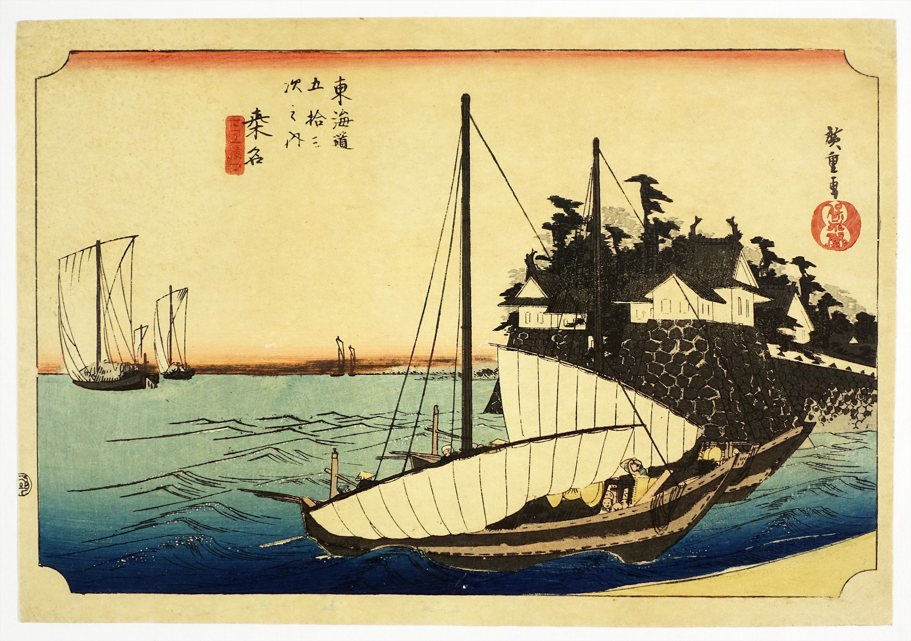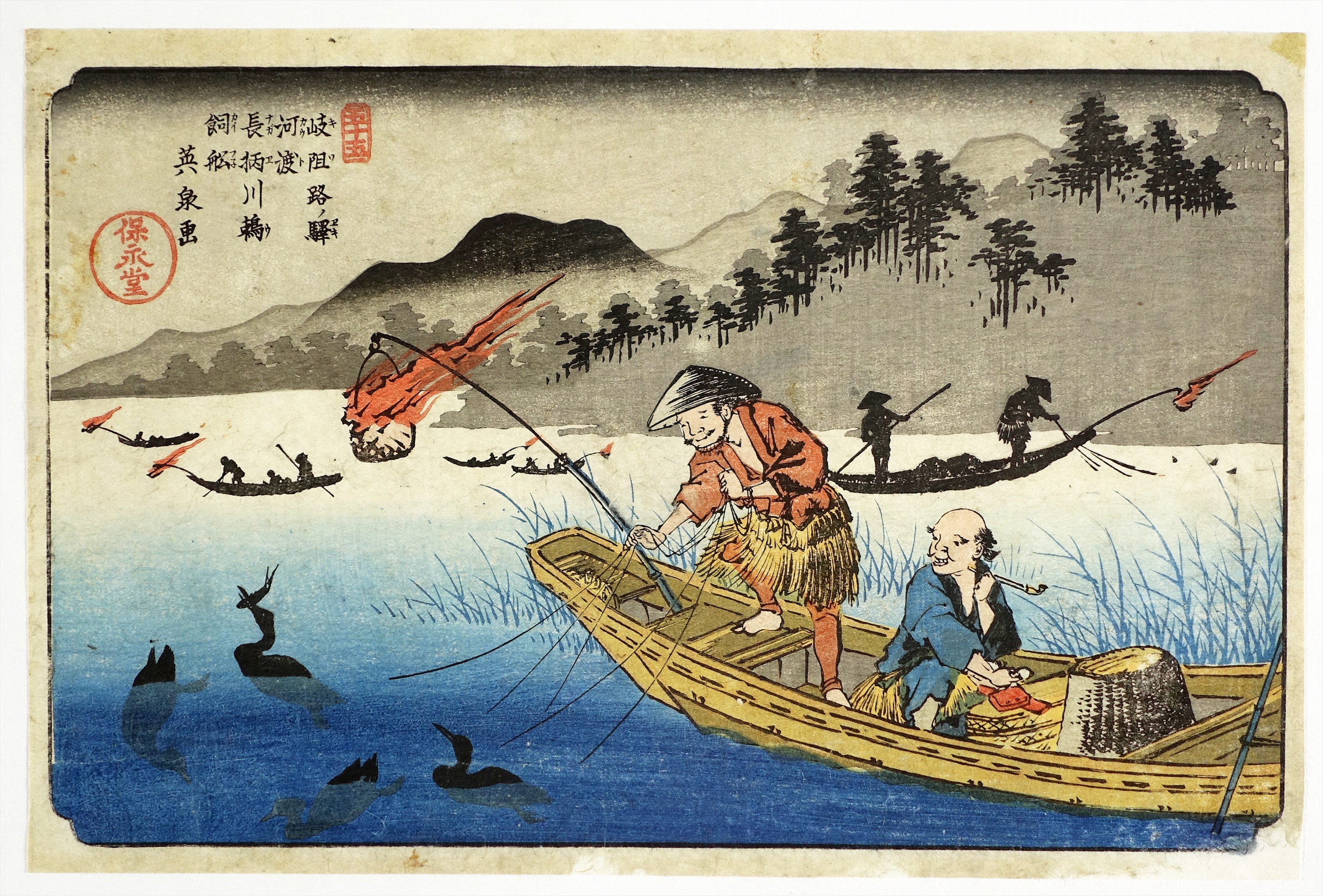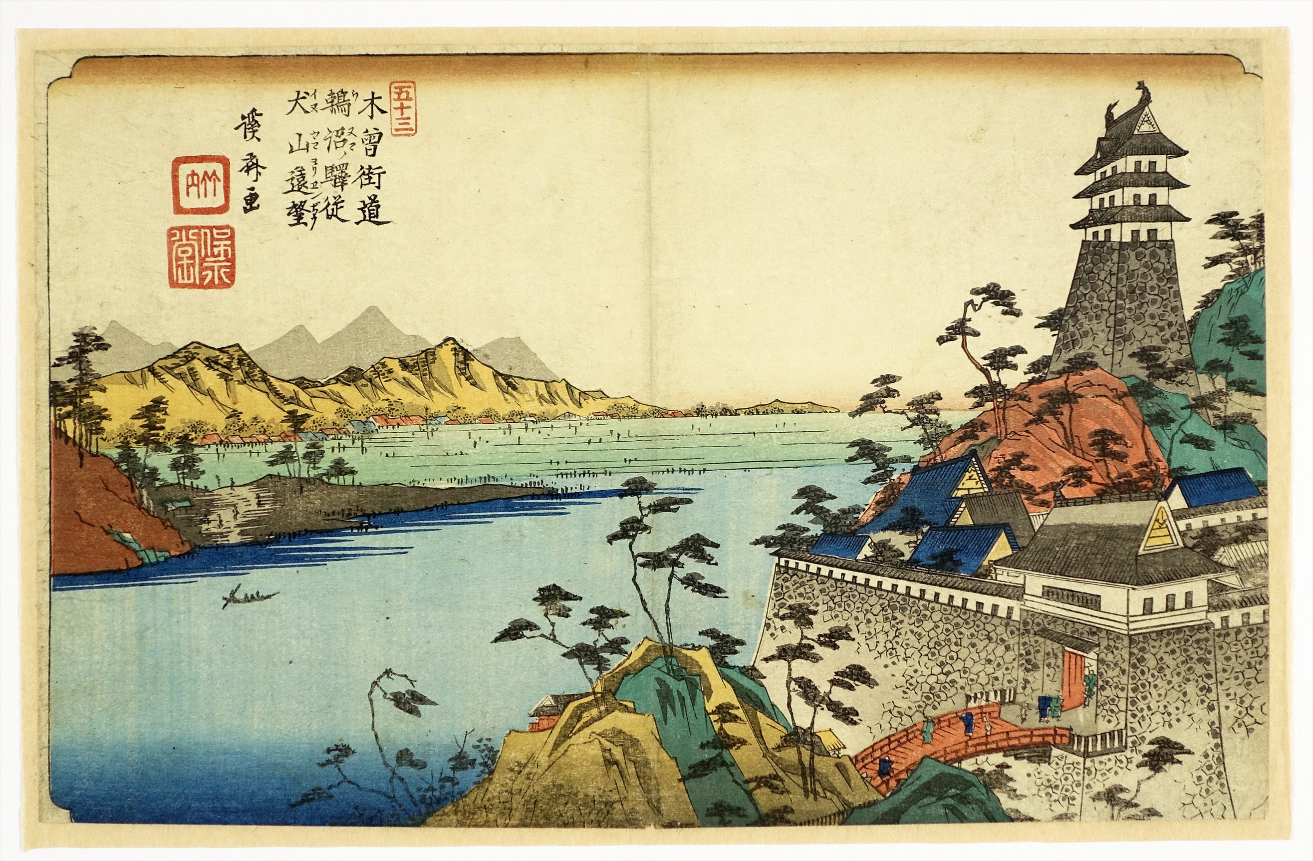 英泉 木曽街道六十九次 鵜沼ノ駅従犬山遠望