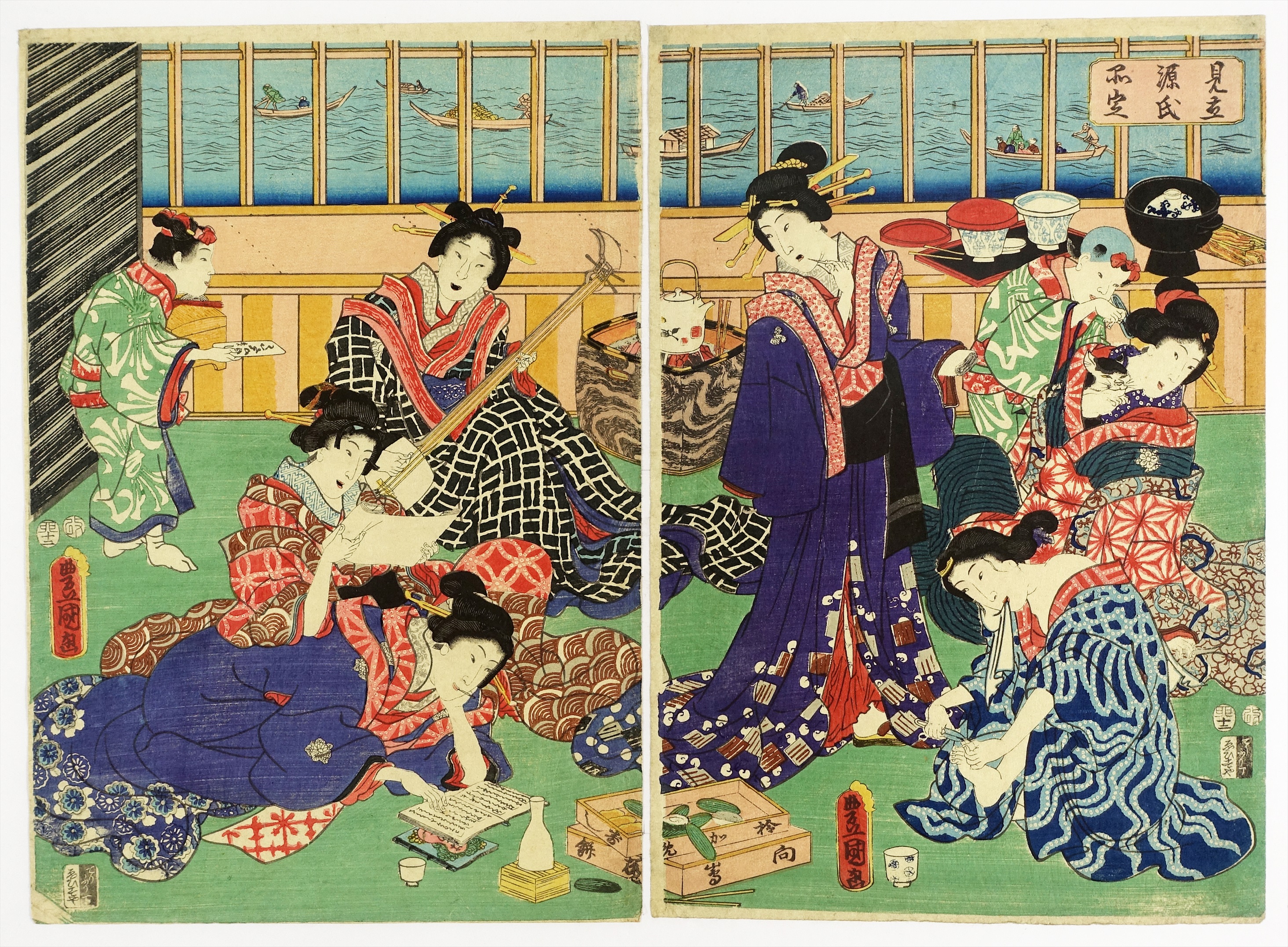 見立源氏品定 二枚続 (美人画 風俗)