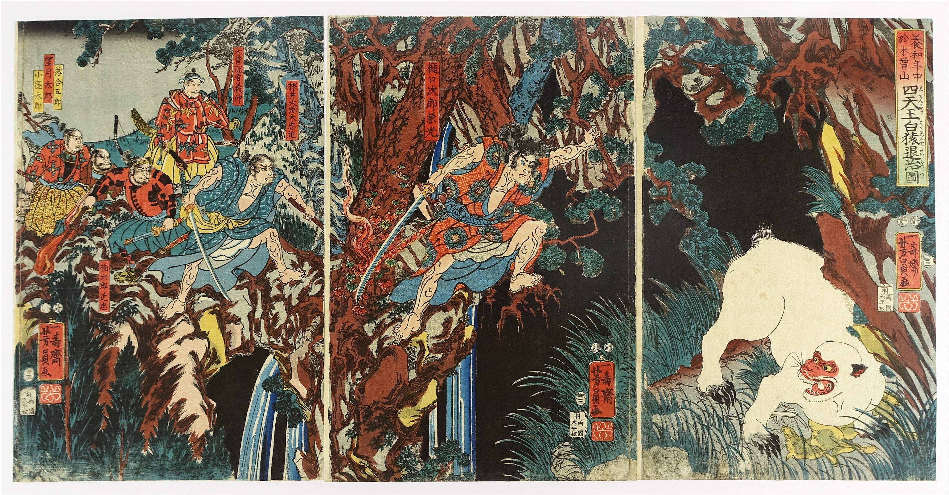 養和年中於木曽山 四天王白猿退治図 三枚続 (歴史 武者絵)