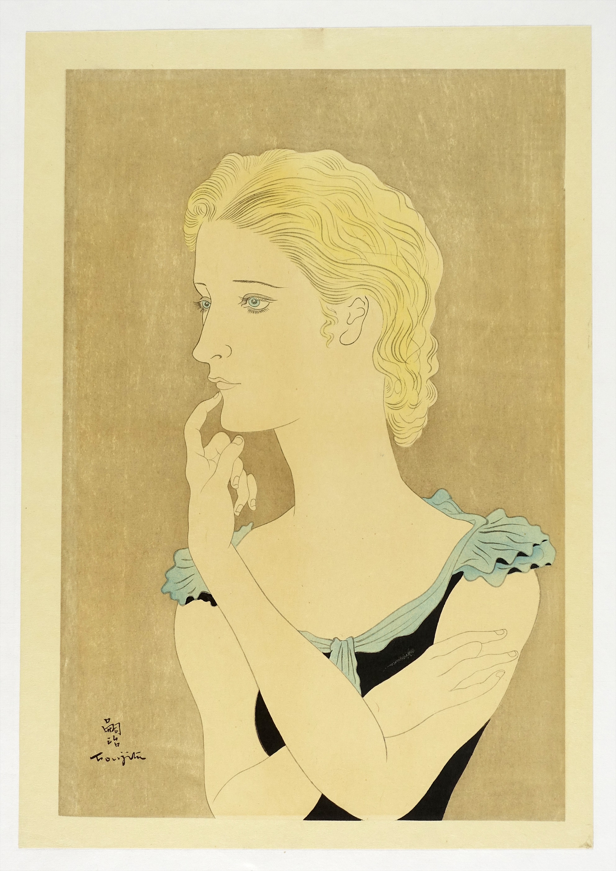 藤田嗣治木版画 フランス娘 青衣の少女(仮題)
