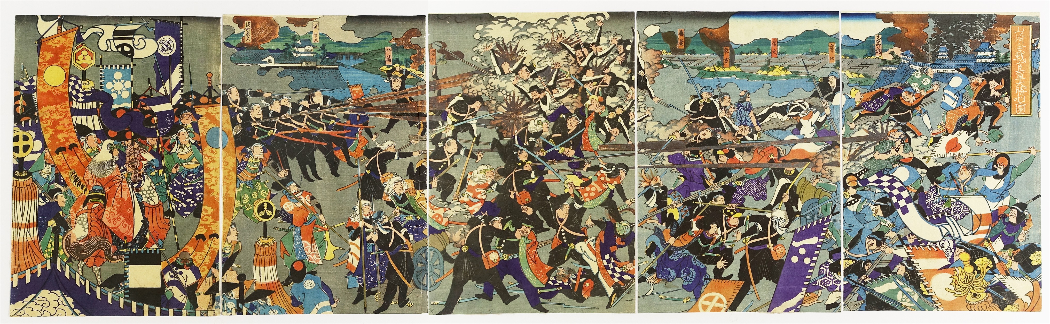 山崎合戦官軍大勝利之図 五枚続 (歴史・武者・維新 戊辰戦争)