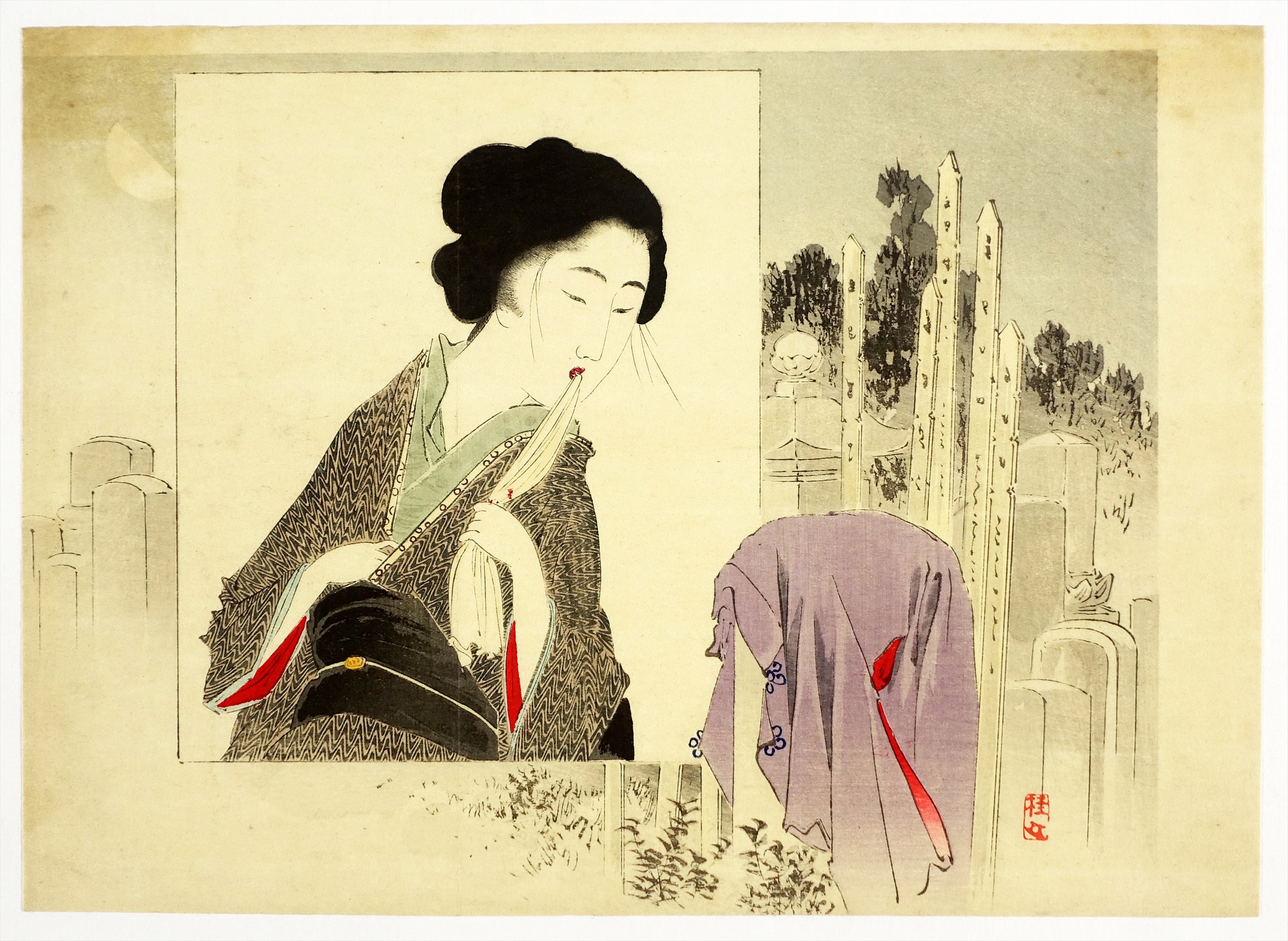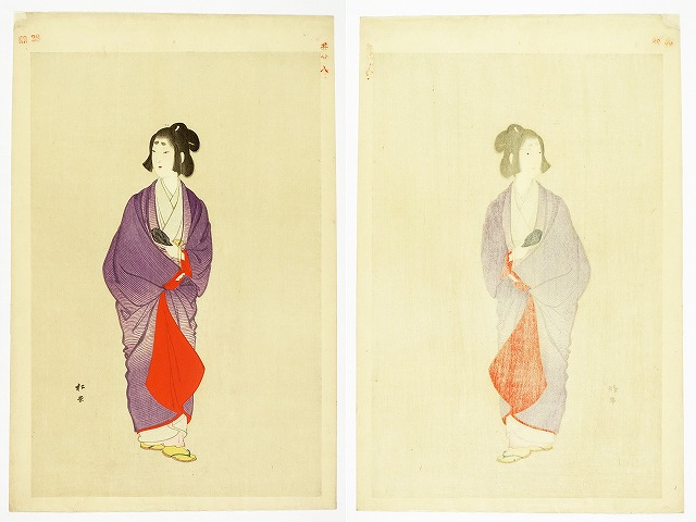 湯川松堂美人木版画 紫の着物(仮題)