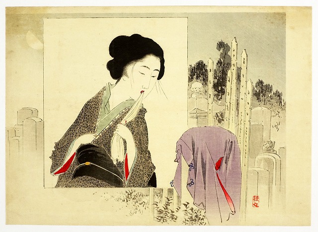湯川松堂美人木版画 朝顔(仮題)