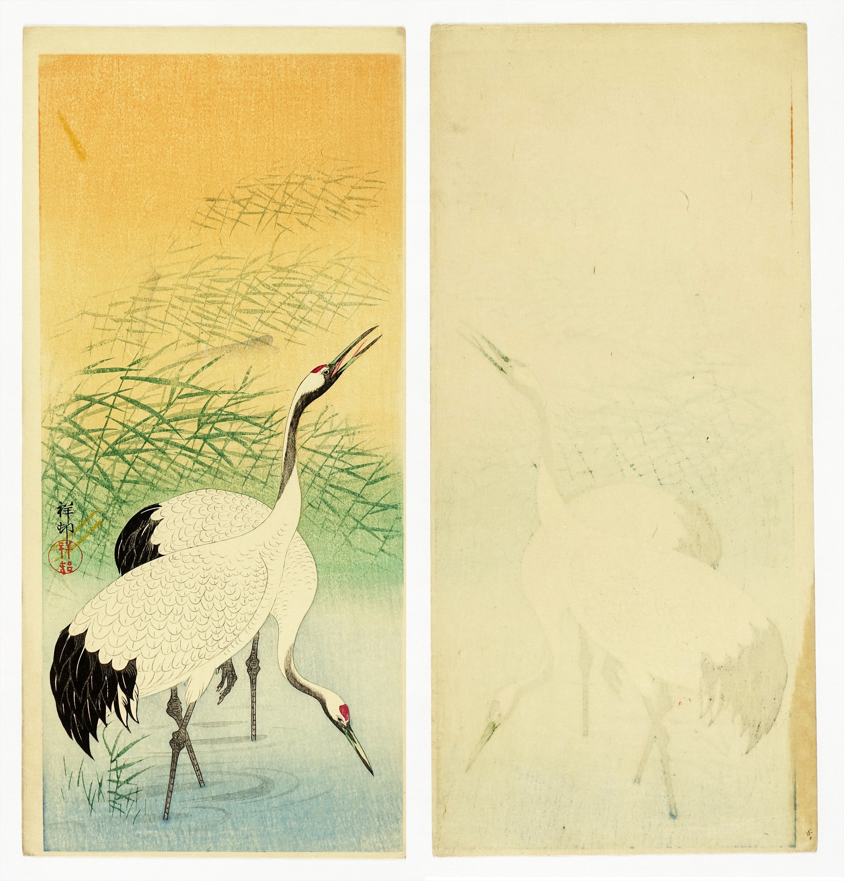 小原古邨(祥邨)木版画 二羽の鶴