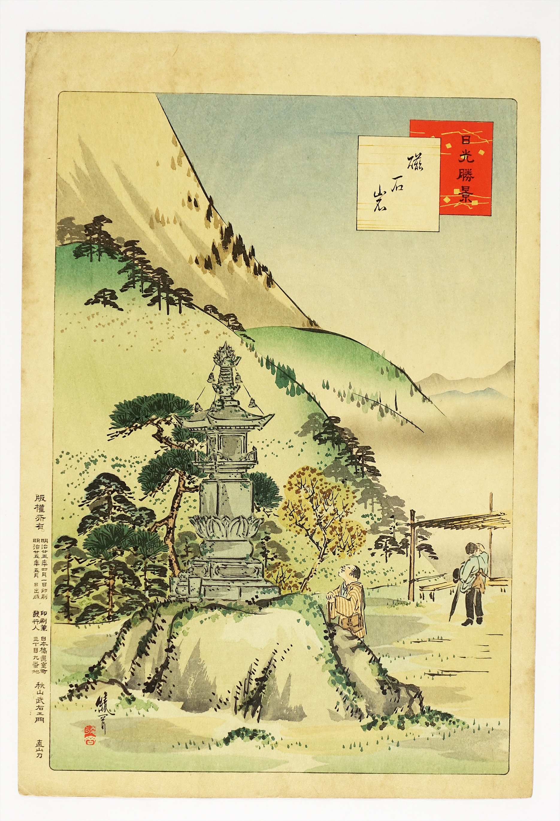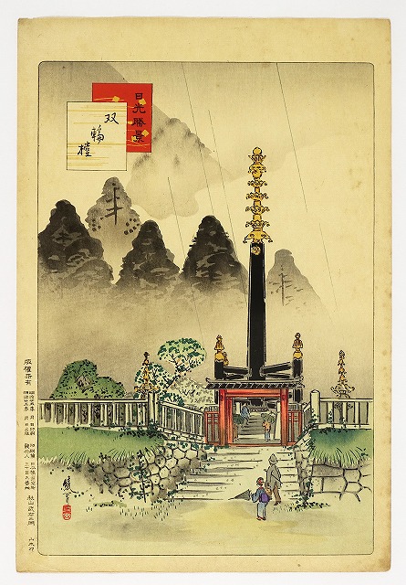 綾岡有真木版画 日光勝景 双輪塔