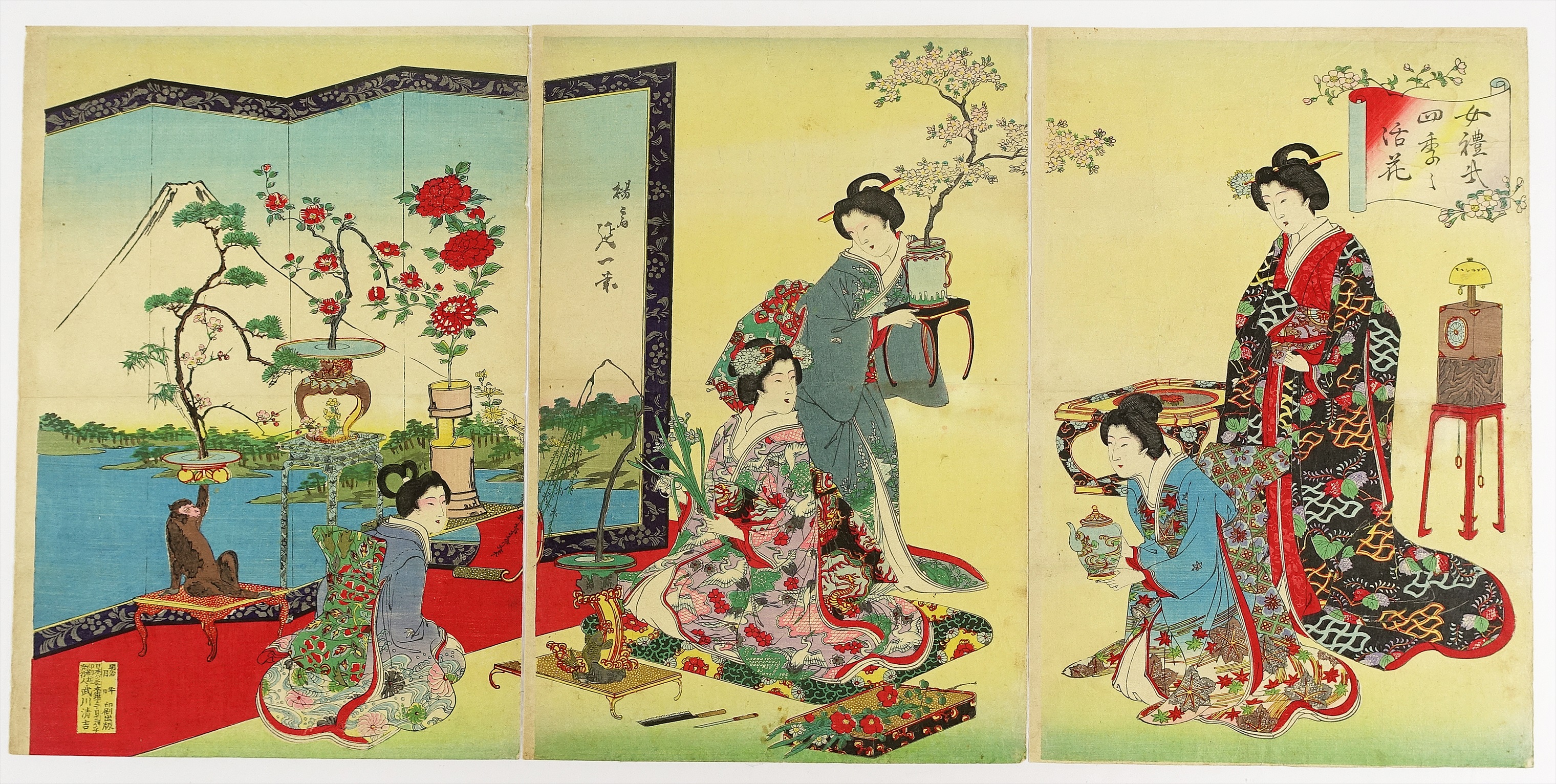 女礼式四季の活花 三枚続