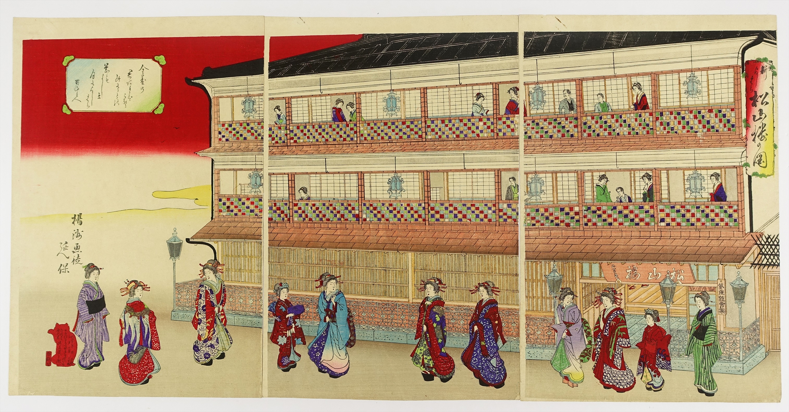 新ばしまち 松山樓の図 三枚続