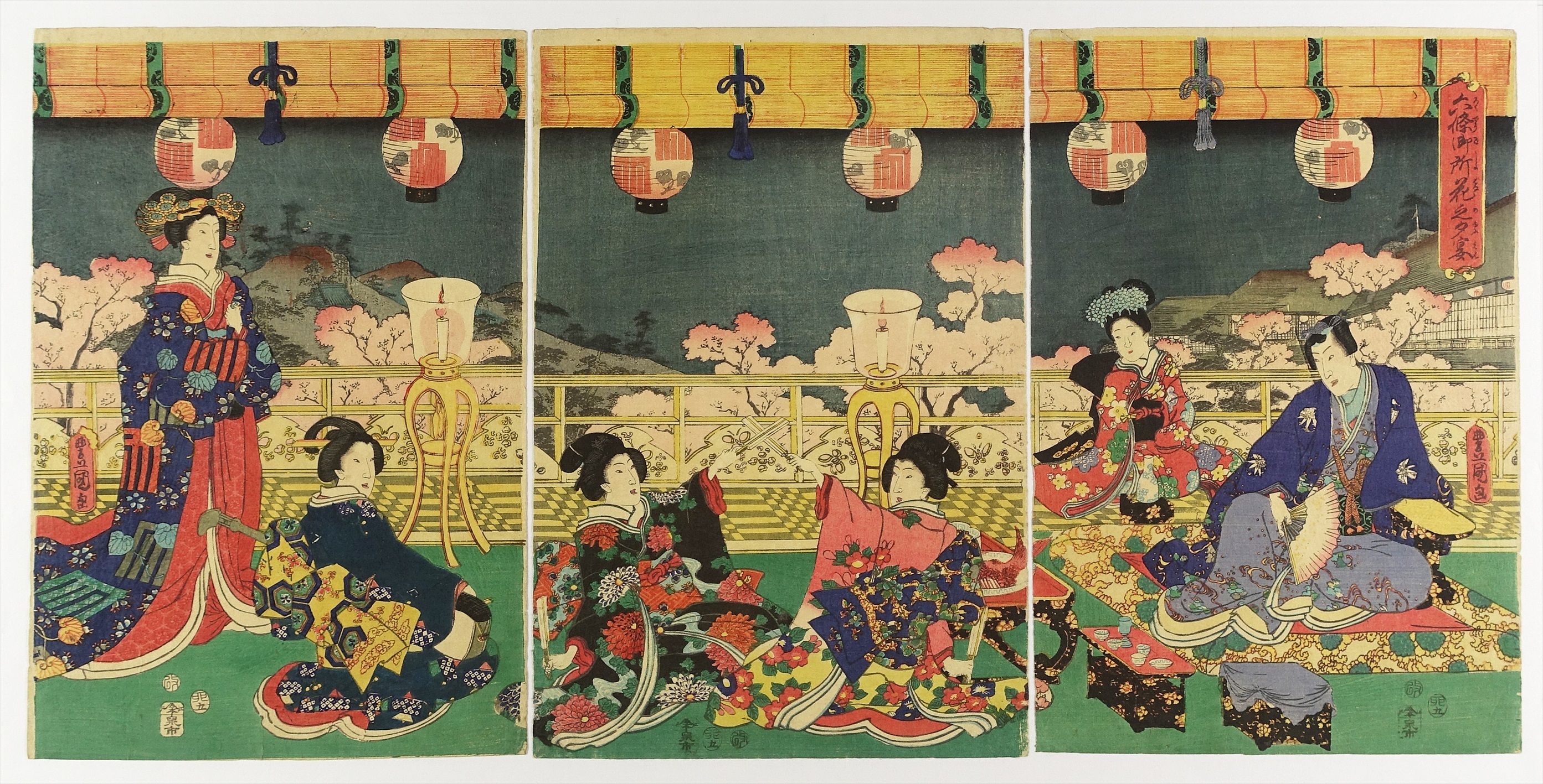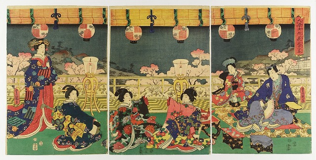 六條御所花之夕宴 三枚続 (源氏絵)