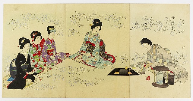 女礼式茶の湯 三枚続 (美人画・風俗)
