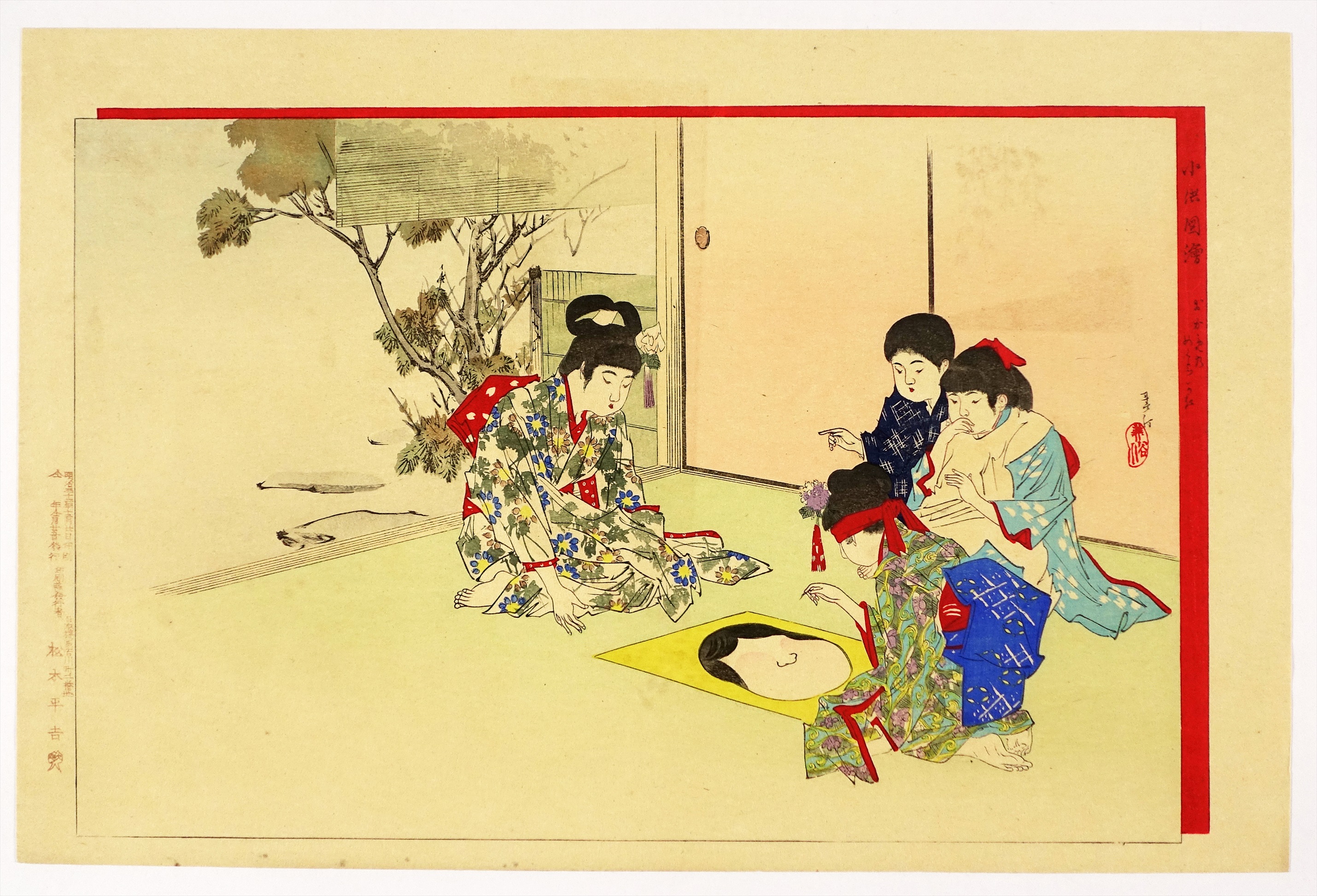 春汀木版画 子供図会 おかめのめくら顔