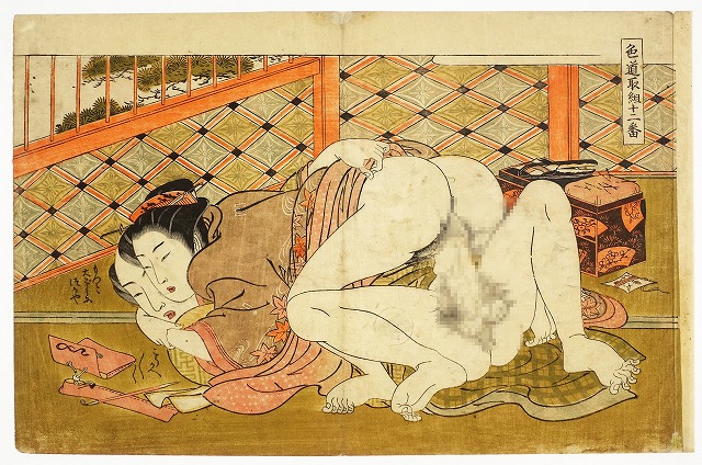 湖龍斎 色道取組十二番 もっと大腰につかや (春画)