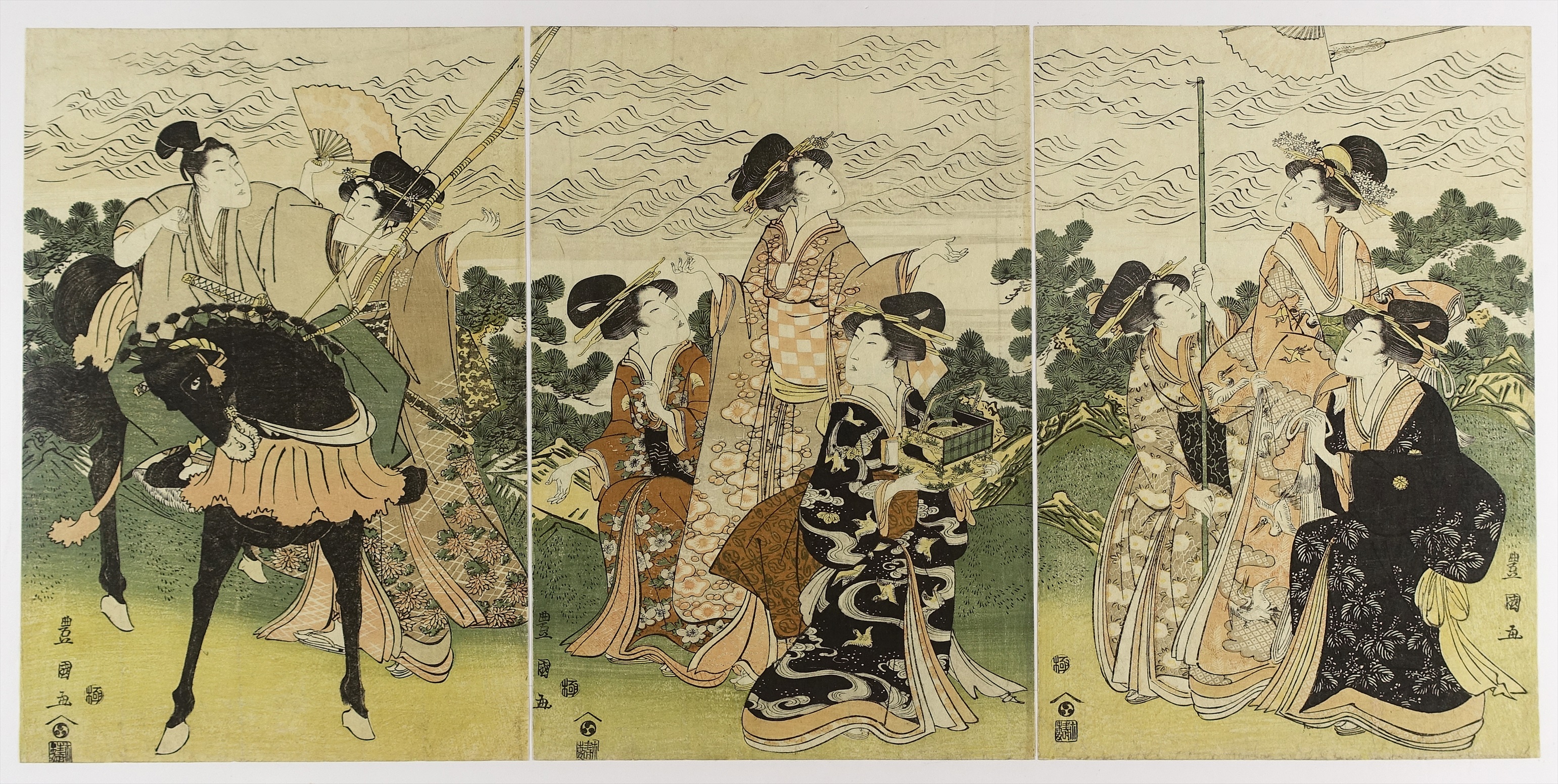 豊国 流鏑馬 三枚続 (仮題 源氏絵)