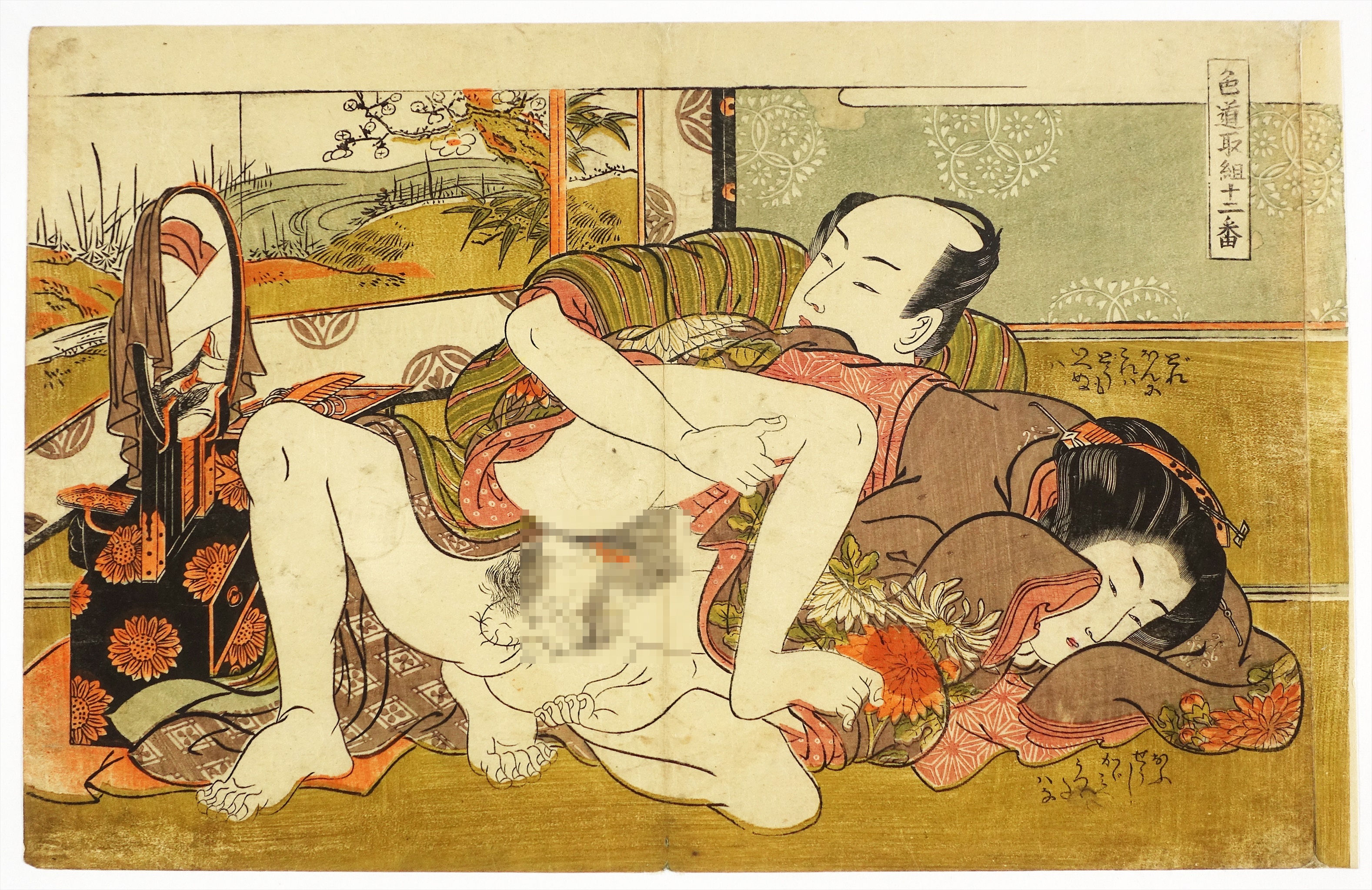 湖龍斎 色道取組十二番 どうせふ々 鏡へうつゝたハな (春画)