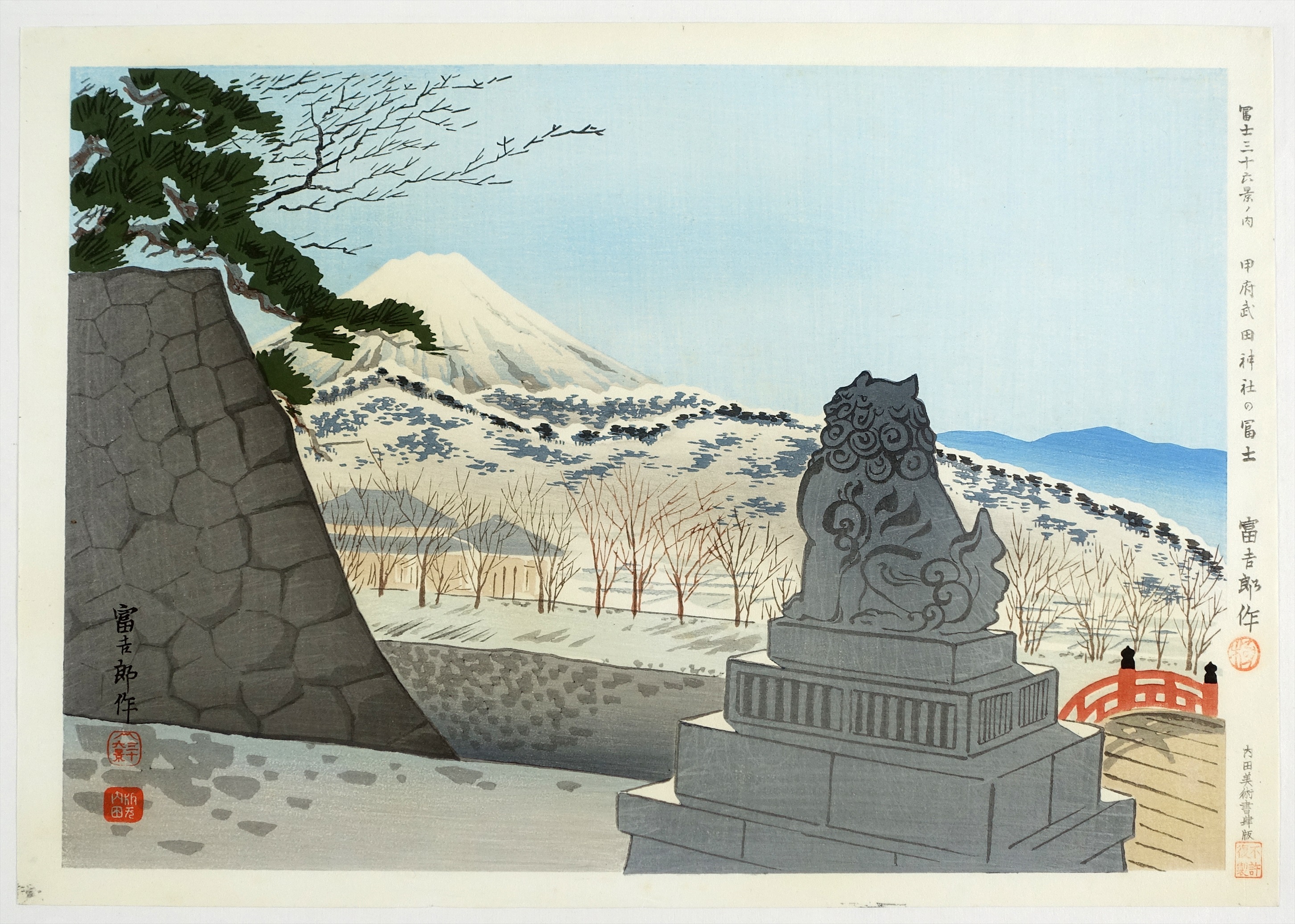 徳力富吉郎木版画 富士三十六景ノ内 甲府武田神社の富士