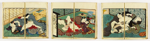 和本半紙本 各題箋付き 上巻春画6点他に9点 中巻4点他に2点 下巻3点他に2点